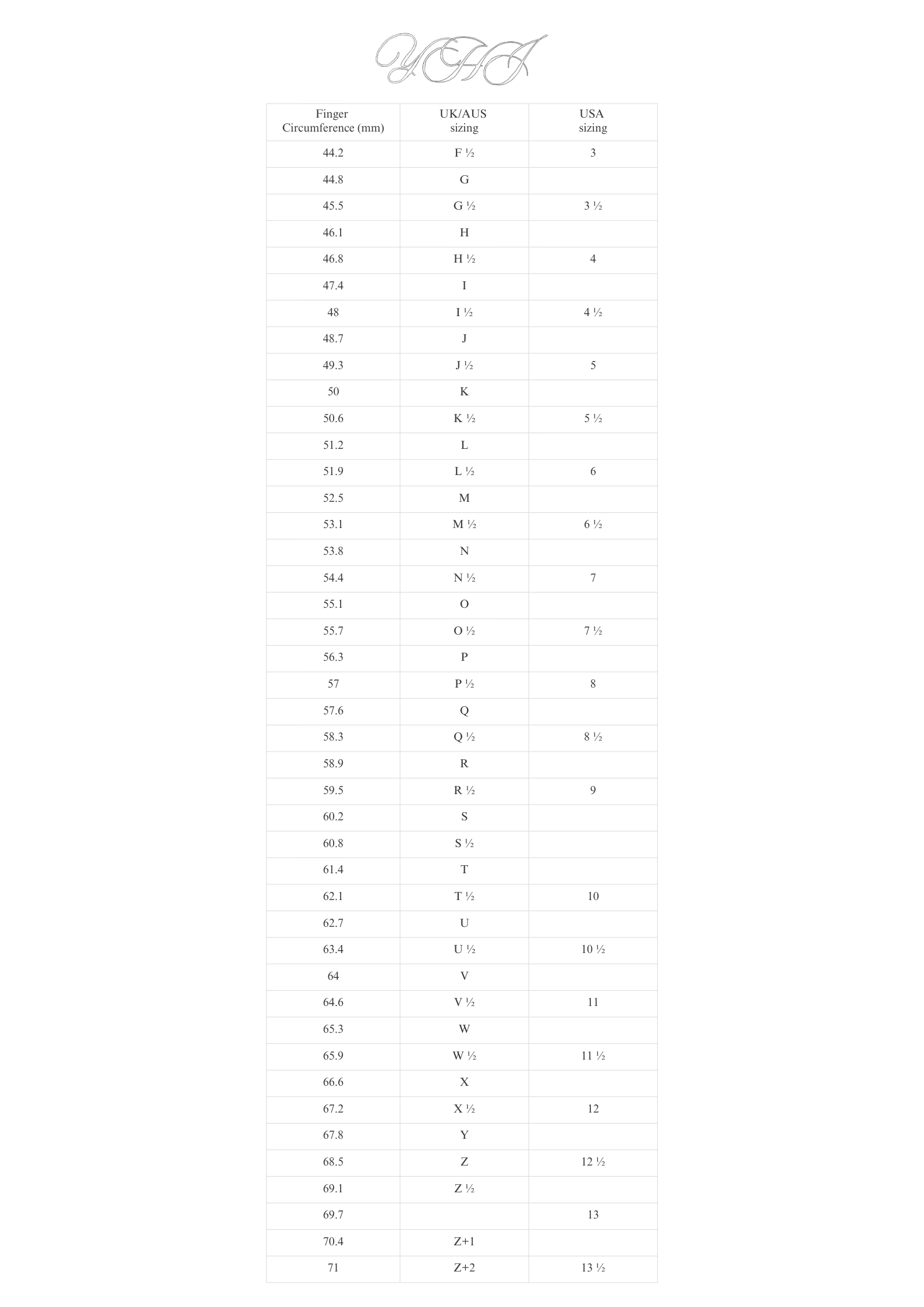 Ring Sizing Chart