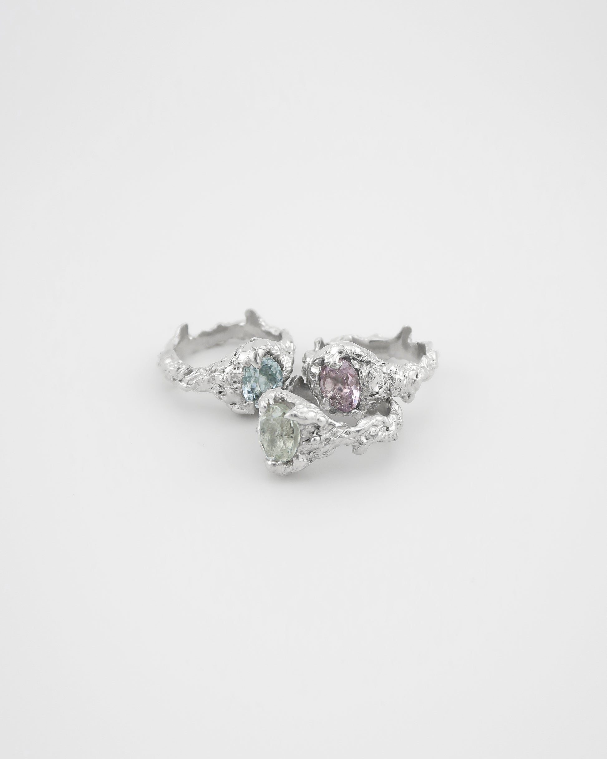 gemstone choices: aquamarine, green amethyst, purple amethyst